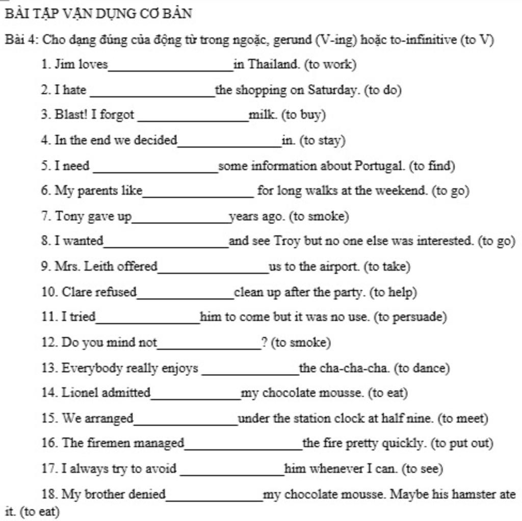 (sau những từ mình đã gạch chân thì động từ đằng nó là dạng như đã trả lời)