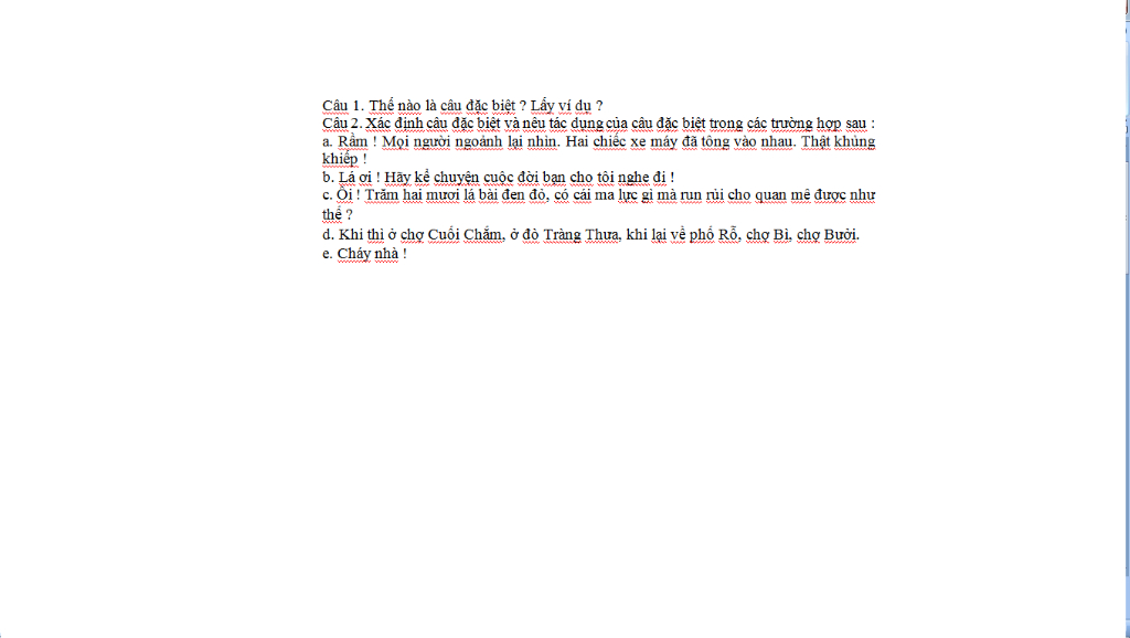 -Câu đặc biệt là câu không cấu tạo theo mô hình chủ ngữ - vị ngữ