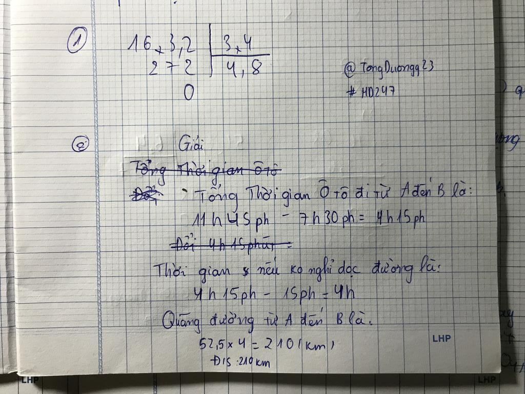 Thời gian để ô tô đi hết quãng đường không nghỉ là :