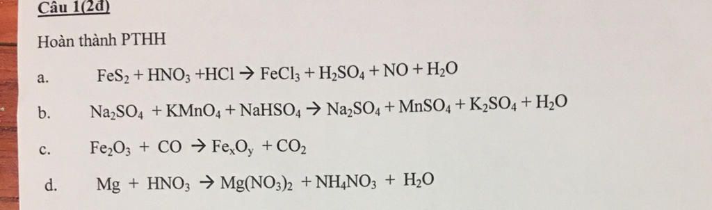 a,Fe{S_2} + 5HN{O_3} + 3HCl \to FeC{l_3} + 2{H_2}S{O_4} + 5NO + 2{H_2}O\\