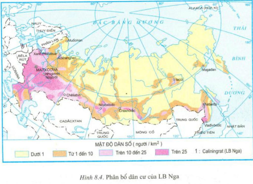 - Khu vực phía Bắc và vùng núi cao nguyên phía Đông dân cư phân bố thưa thớt, hầu như không có người sinh sống: mật độ dân số dưới 1 người/km2.