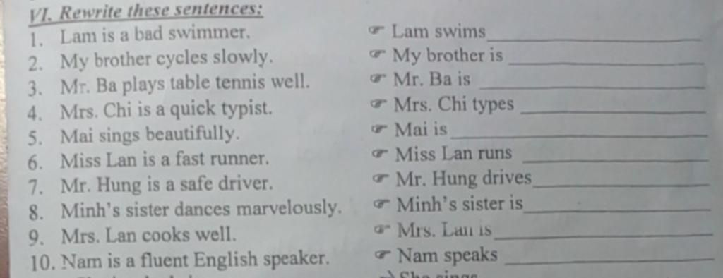 (typist (n)-> type (v), quick (adj)-> quickly)