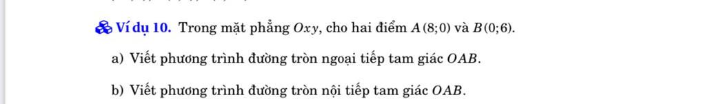 Viết phương trình đường tròn nội tiếp tam giác OAB.