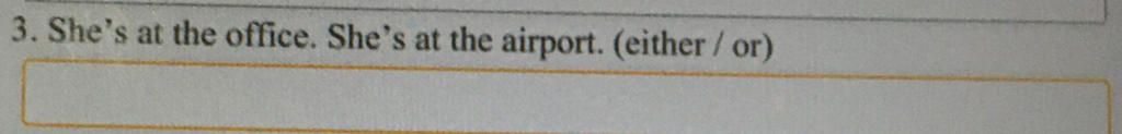 3. She is either at the office or at the airport.