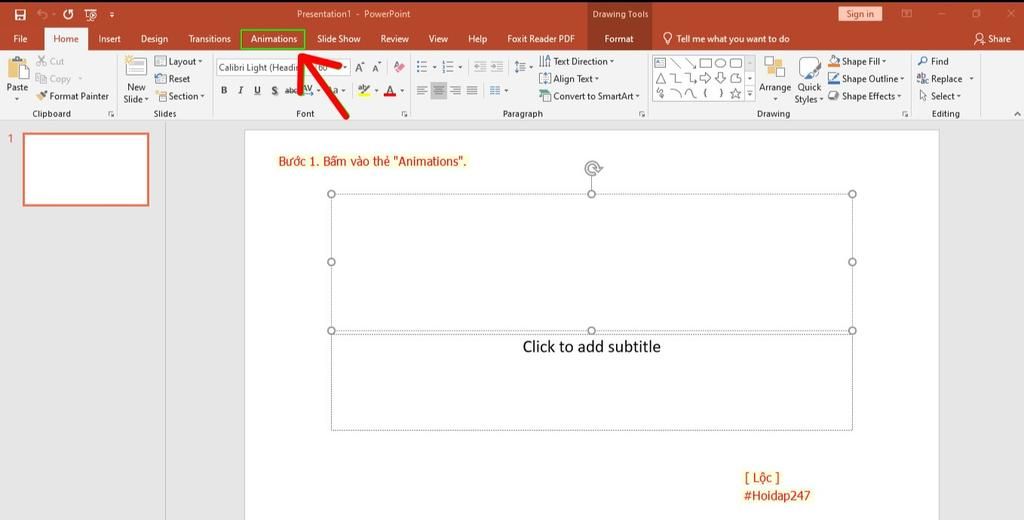 `->` Để cài đặt hiệu ứng trong phần mềm PowerPoint cho từng đối tượng em chọn thẻ Animations rồi thêm hiệu ứng.