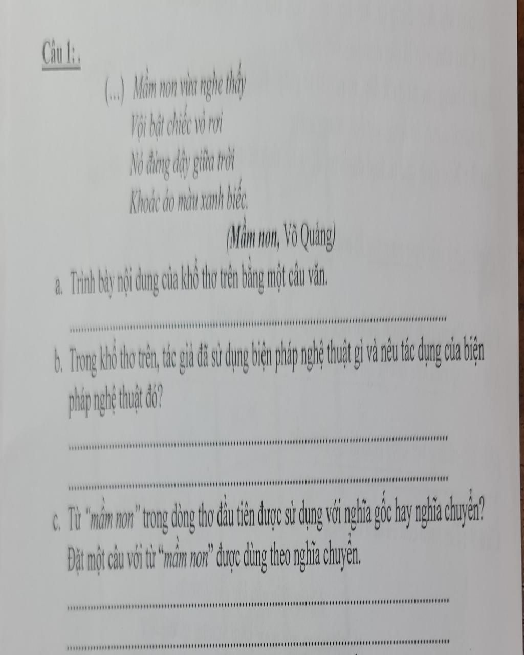 ⇒ - Từ "mầm non" trong dòng thơ đầu tiên dc sử dụng với nghĩa gốc