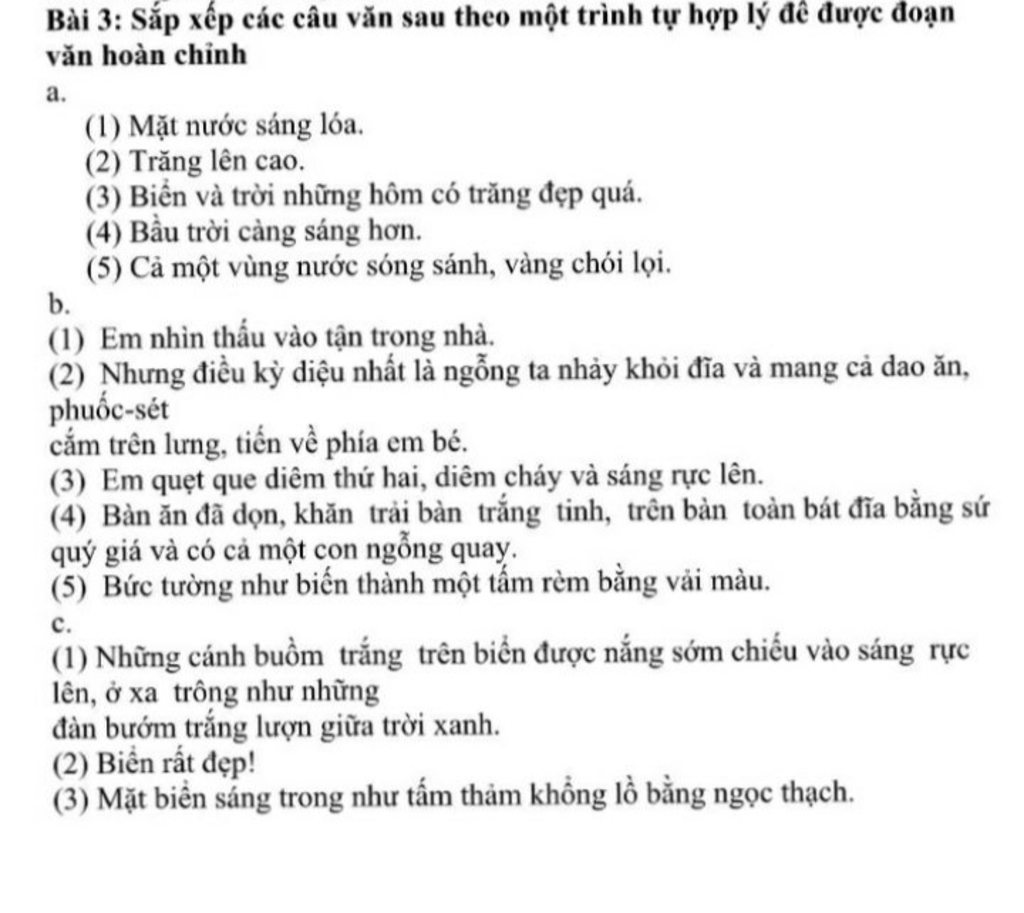 `1` . `(3)` Biển và trời những hôm có trăng đẹp quá .