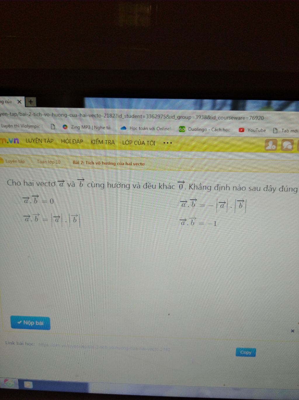 Do đó vecto a.vecto b= độ dài vecto a. độ dài vecto b