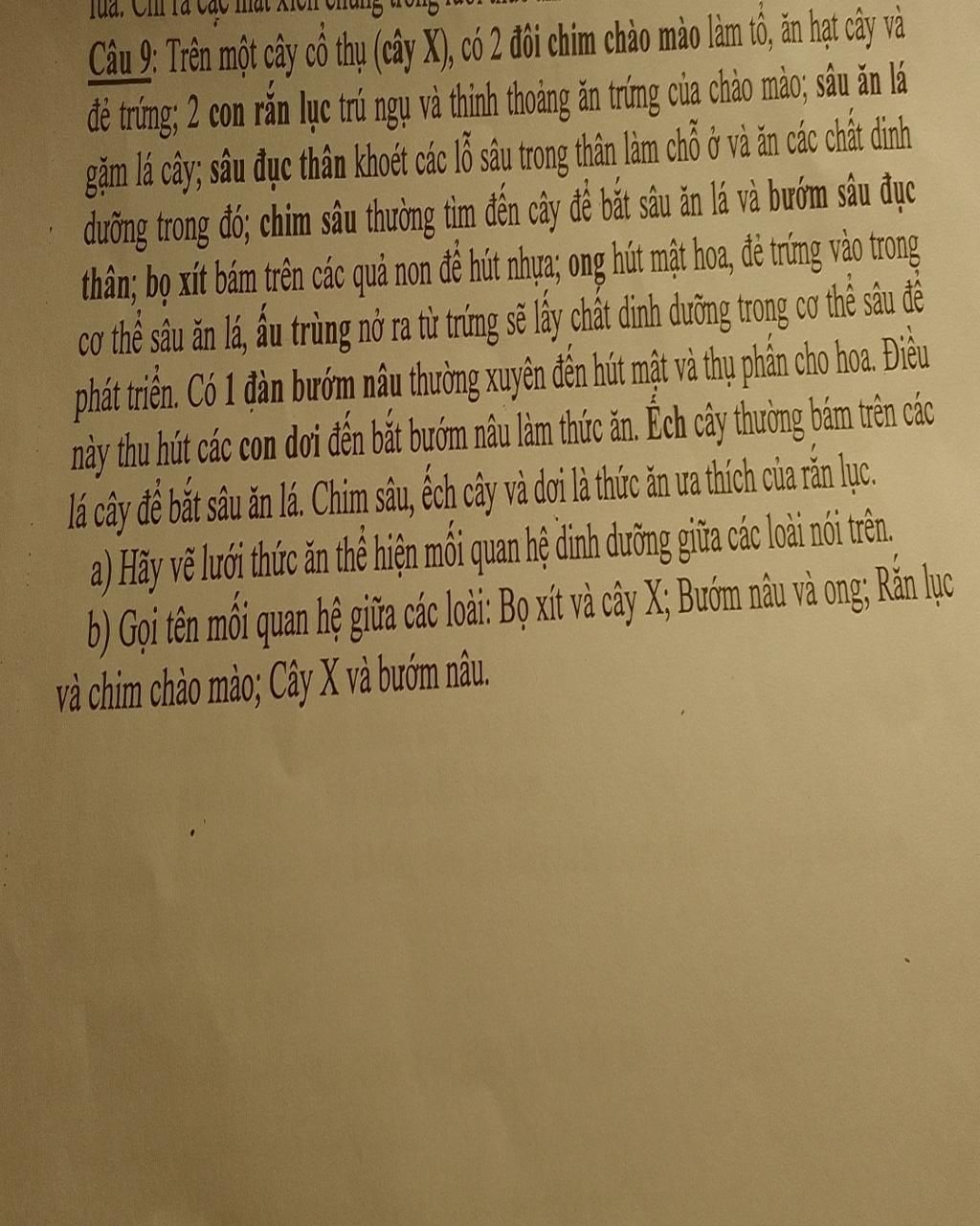 Rắn lục và chim chào mào là sinh vật này ăn sinh vật khác