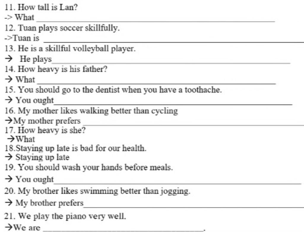 Dịch:Mẹ tôi thích đi bộ hơn đi xe đạp
