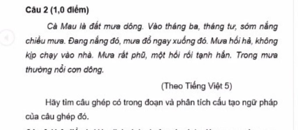 Câu ghép: Vào tháng ba, tháng tư, sớm nắng chiều mưa.