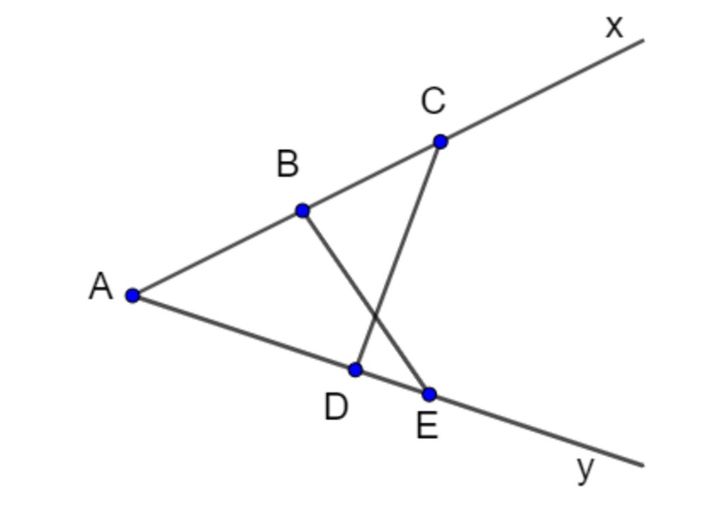 `\frac{AB}{AD}=\frac{AE}{AC} (\frac{8}{10}=\frac{12}{15}=4/5)`