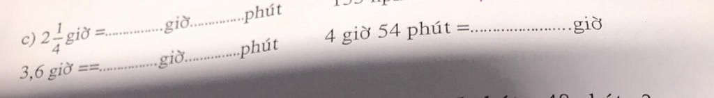 c) 2$\frac{1}{4}$ giờ = 2 giờ 15 phút