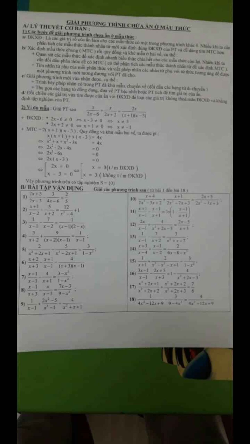 GIẢI PHƯƠNG TRÌNH CHÚA ĂN Ở MẪU THỨC