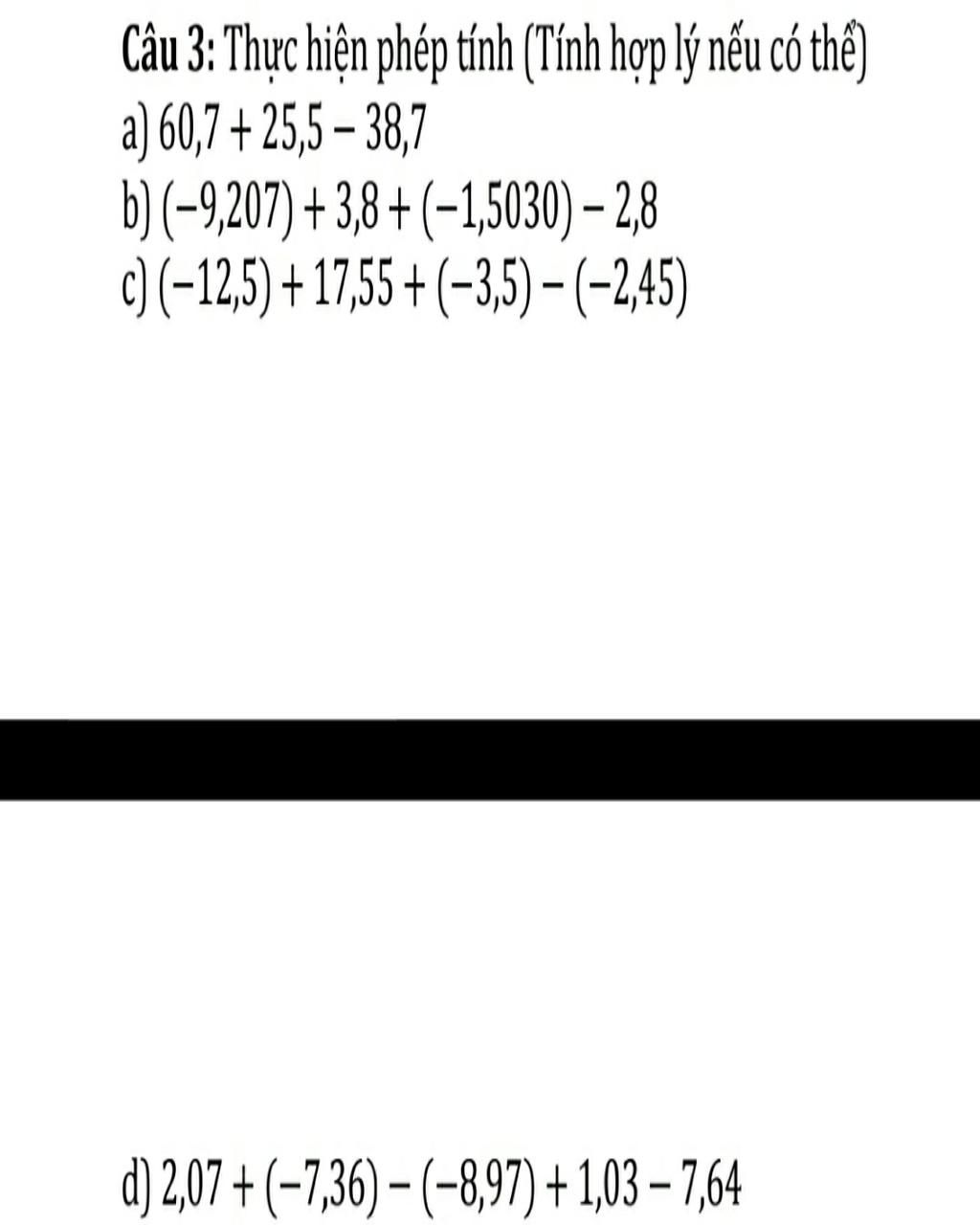 `d) 2.07 + (-7.36) - (-8.97) + 1.03 - 7.64`