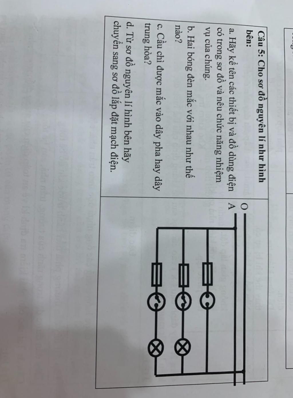 a) Các thiết bị và đồ dùng điện: 3 cầu chì, 1 ổ cắm, 2 công tắt 2 cực, 2 bóng đèn sợi đốt