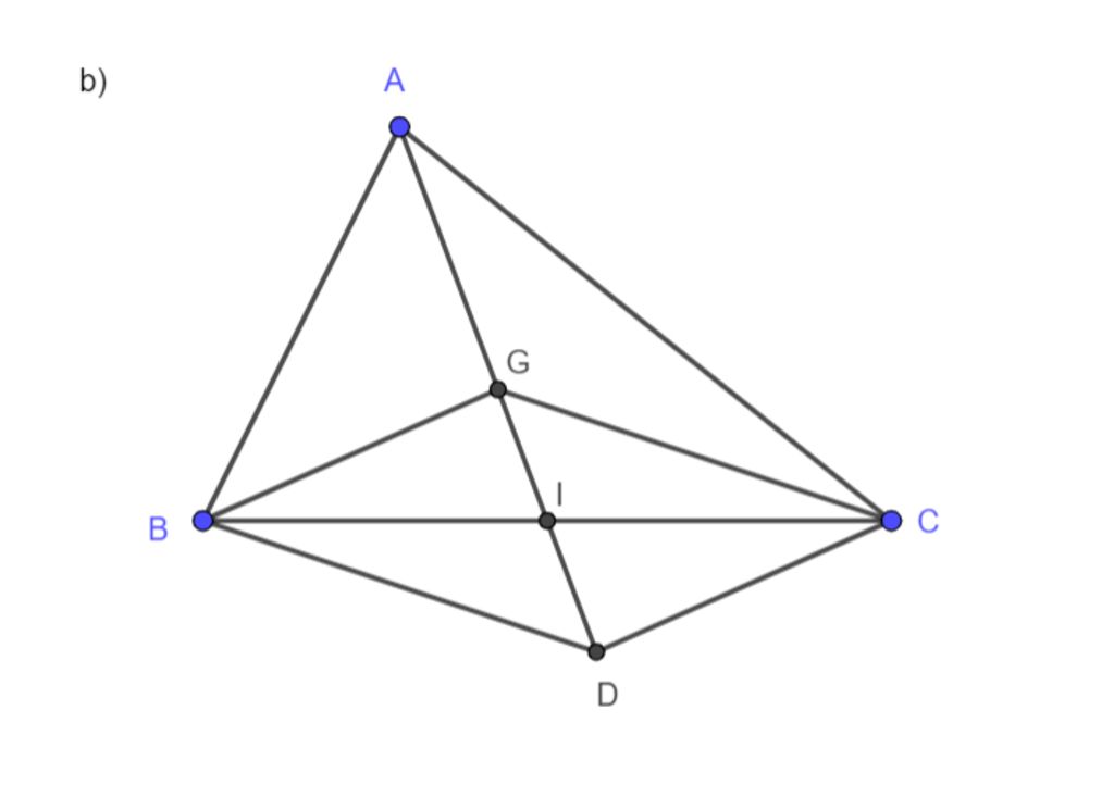 $\Rightarrow AG=\dfrac23AI\Rightarrow G$ là trọng tâm (vì I là trung điểm của BC nên AI là trung tuyến cm ở (*)) (đpcm)
