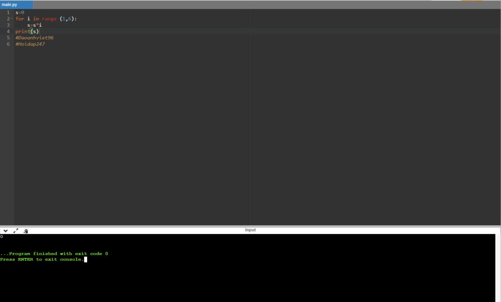 Giải thích: S khởi tạo bằng 0 `=>` 0 nhân bao nhiêu cũng bằng 0 `=>` S=0