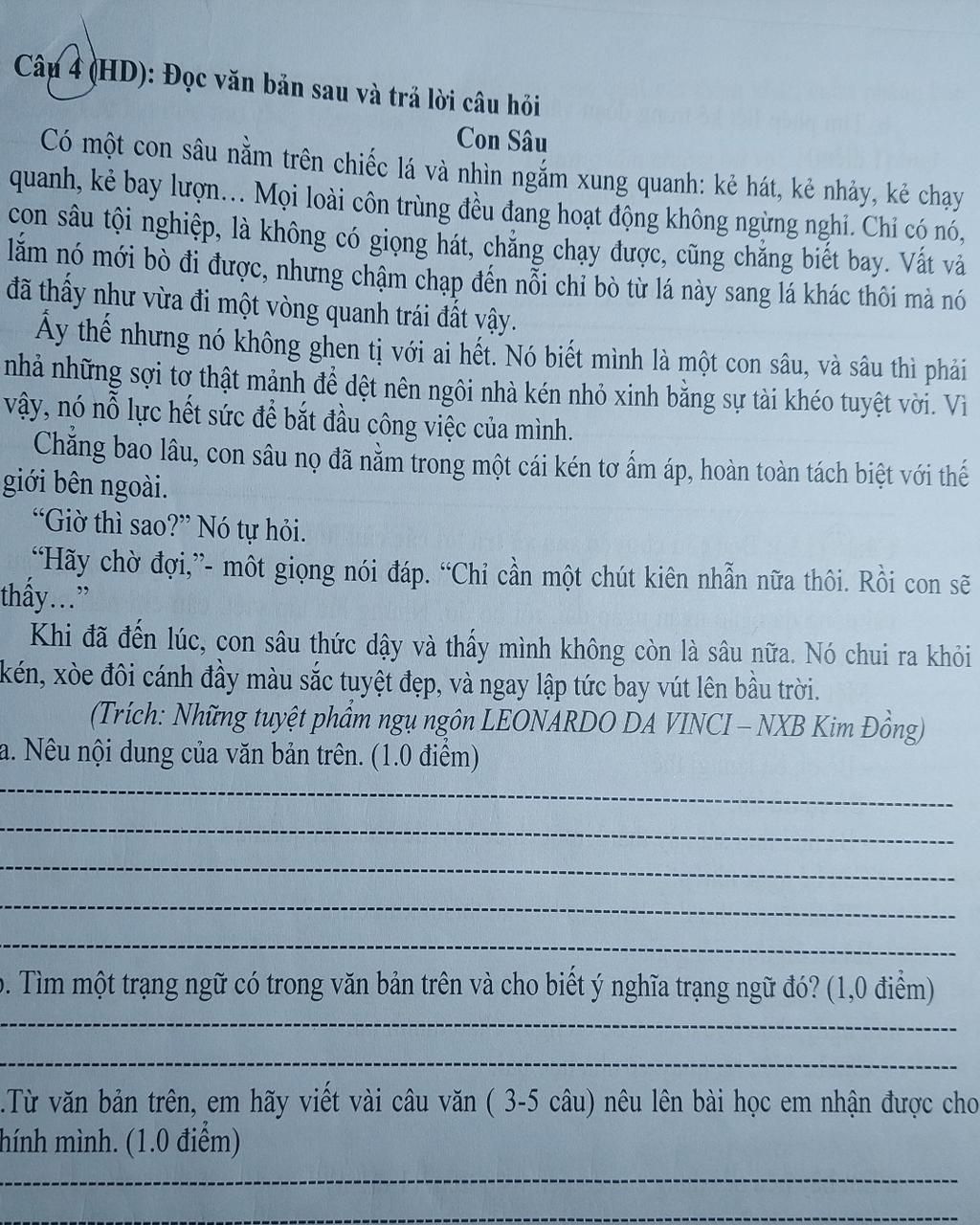 - Trên chiếc lá `to` Trạng ngữ chỉ nơi chốn.