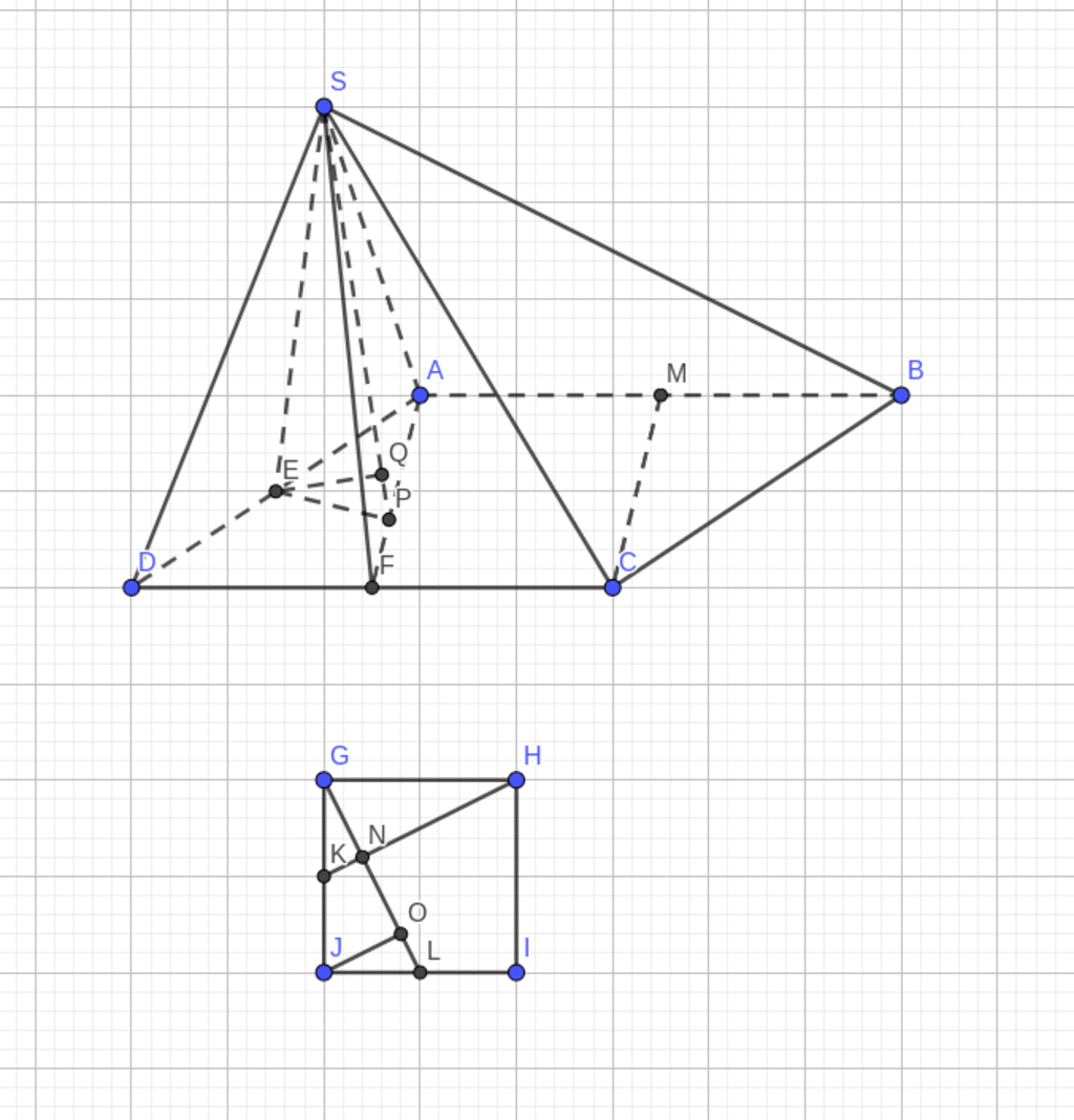 $\to d(SA,CM)=d(C,SAF)=d(D,SAF)=2d(E,SAF)$