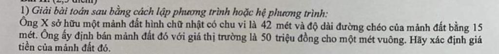 Vậy giá tiền của mảnh đất là $12.9.50 000 000=5 400 000 000$ đồng