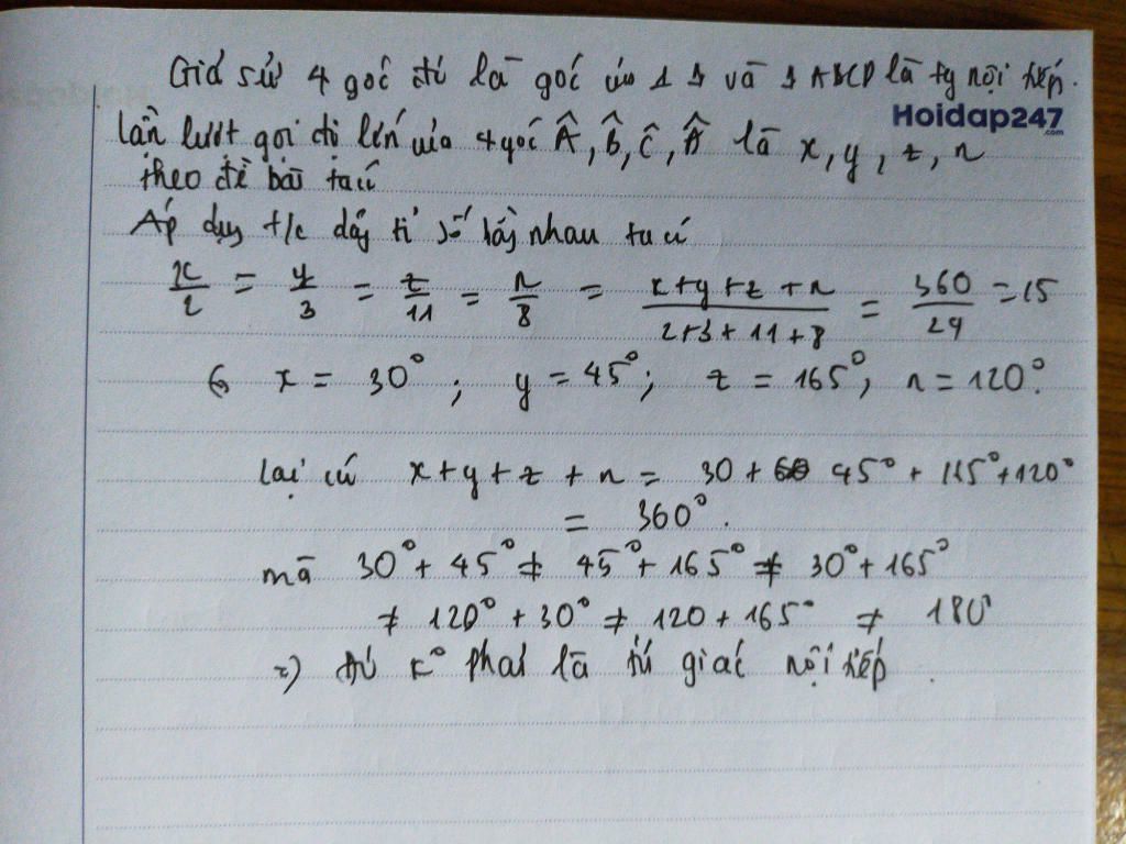 Vậy tứ giác `ABCD` không phải tứ giác nội tiếp.