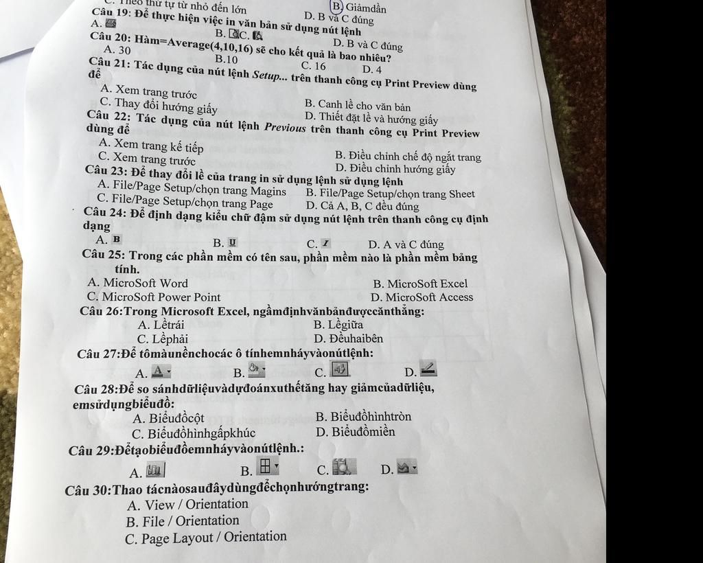 `23:` Để thay đổi lề của trang in sử dụng lệnh sử dụng lệnh: