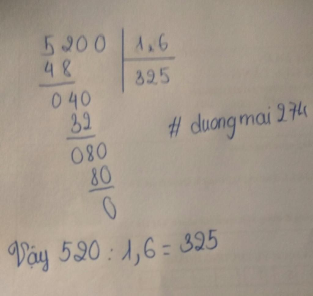 Vậy $\text{520 ÷ 1,6 = 325}$