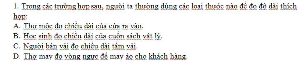 D. Để đo vòng ngực để may áo cho khách hàng thợ may phải dùng thước dây.