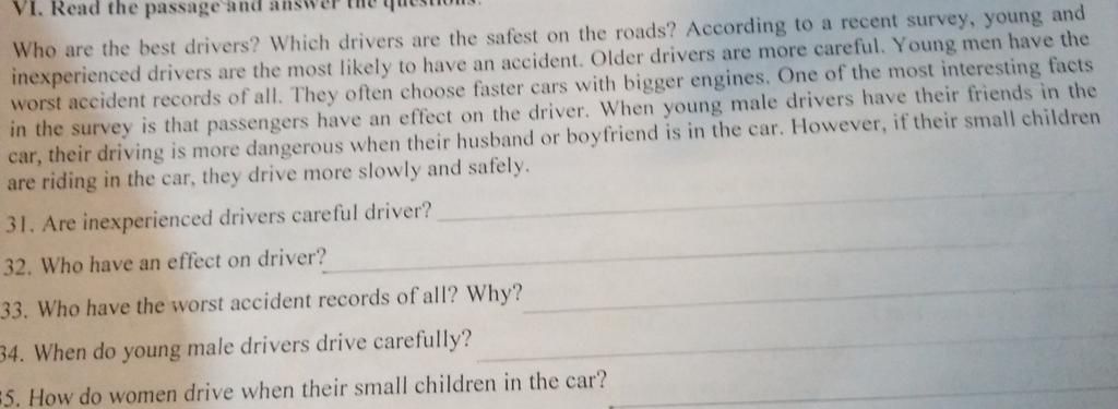 34. Young male drivers drive carefully when their wife or girlfriend is in the car. (Đề bài lỗi when young male drivers -> không phải husbands or boyfriend)