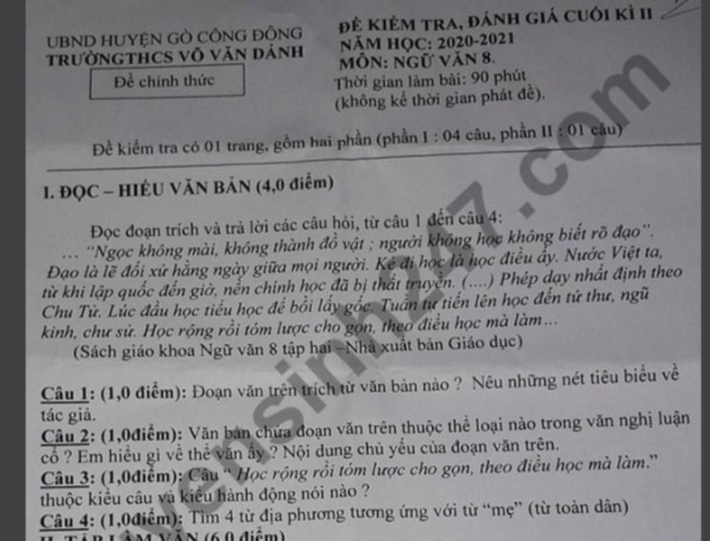 I. ĐỌC – HIẾU VĂN BẢN (4,0 ...