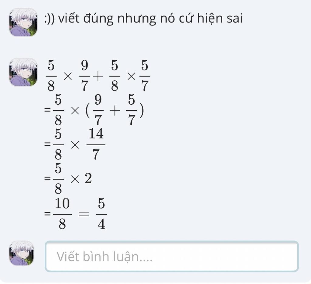 $\dfrac{5}{8}×\dfrac{9}{7}+$ $\dfrac{5}{8}$$ $×\dfrac{5}{7}$