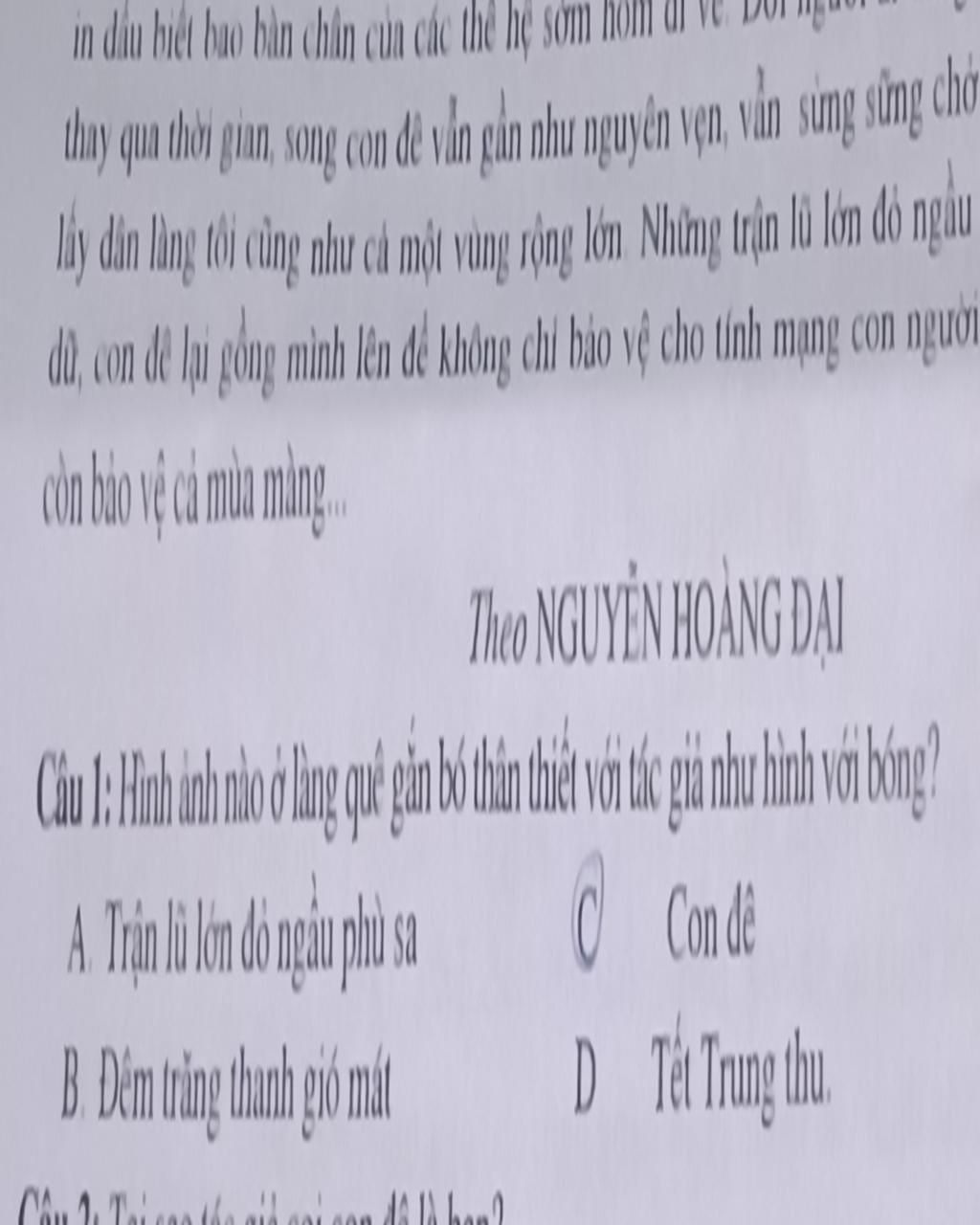 Câu 1: Hình ảnh nào ở làng quê gắn bó thân thiết với tác giả như hình với bóng ?