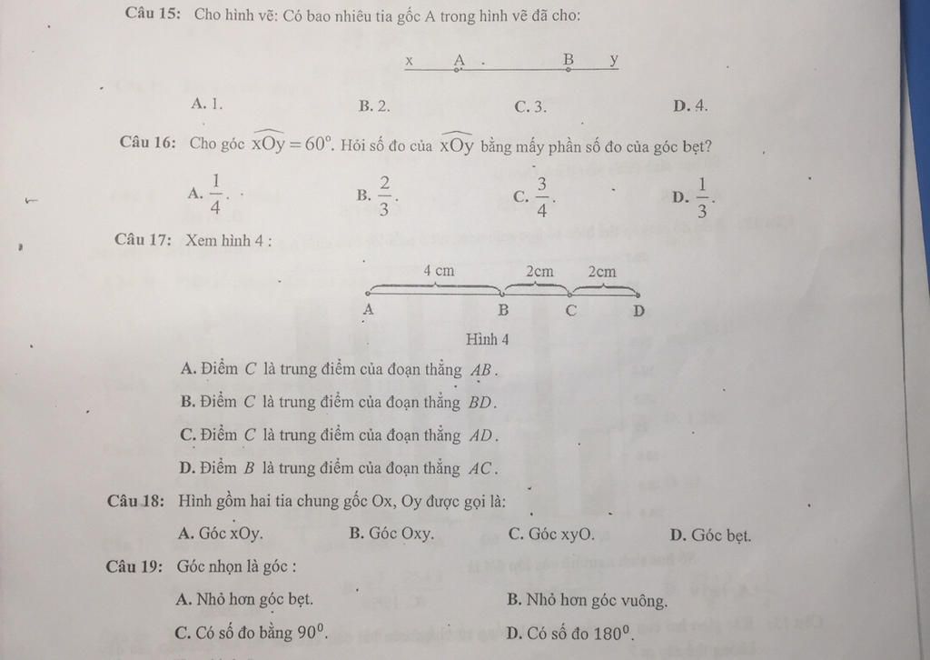 Câu 15: Cho hình vẽ: Có bao nhiêu tia gốc A trong hình vẽ đã cho: