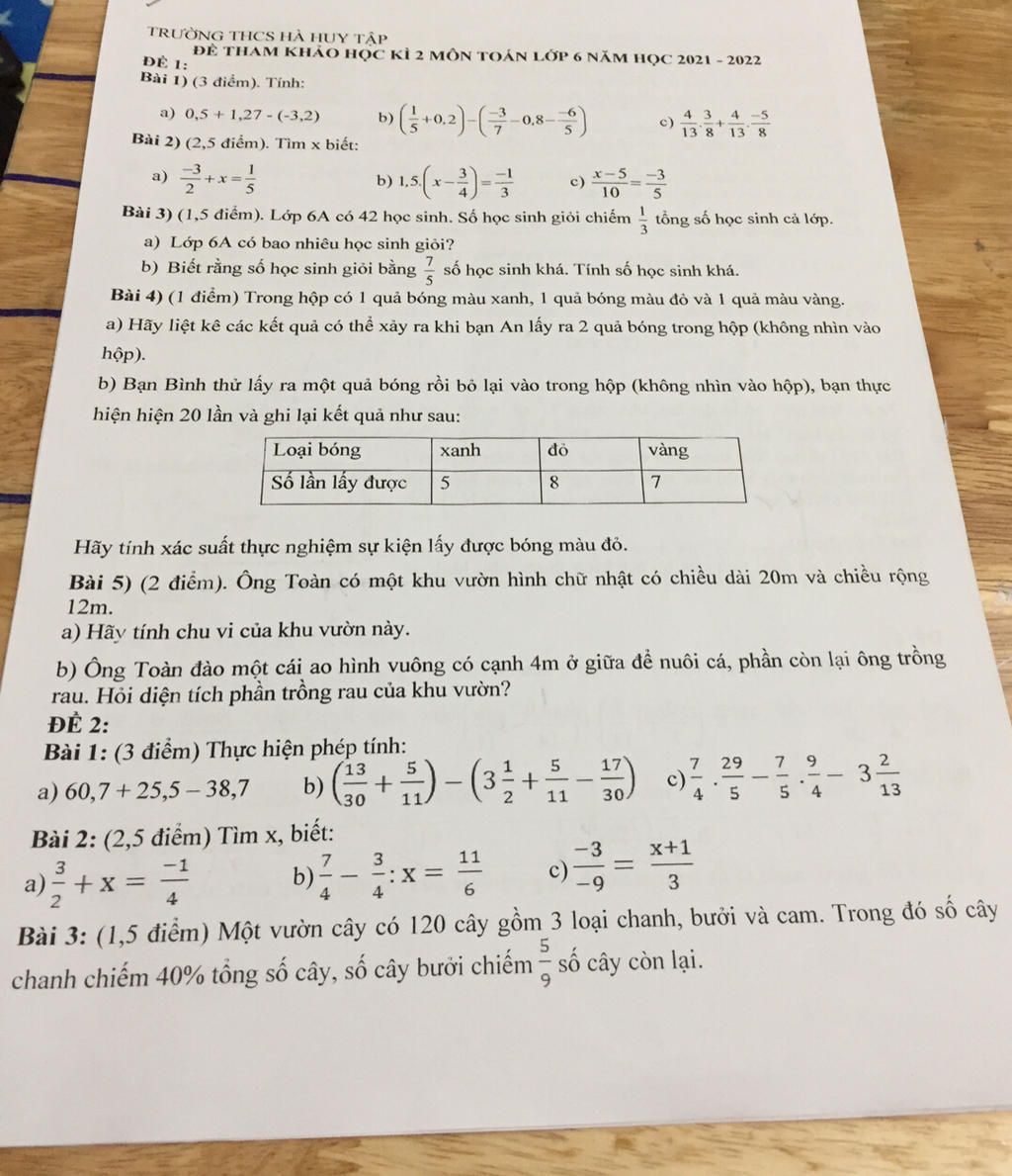ĐỀ THAM KHẢO HỌC KÌ 2 MÔN TOÁN LỚP 6 NĂM HỌC 2021 - 2022