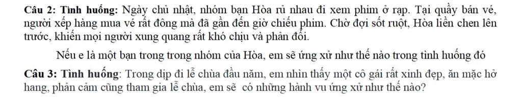 Em ko đồng ý với ý kiến của bạn hòa vì bạn hòa đã làm sai quy định của mọi người , mọi người xếp hàng để chờ đợi bạn hòa ko muốn chờ đợi mà đã lấn chiếm chỗ để mua ve trước