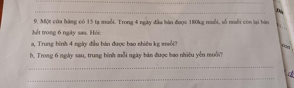b) Số muối còn lại sau 4 ngày đầu bán là :