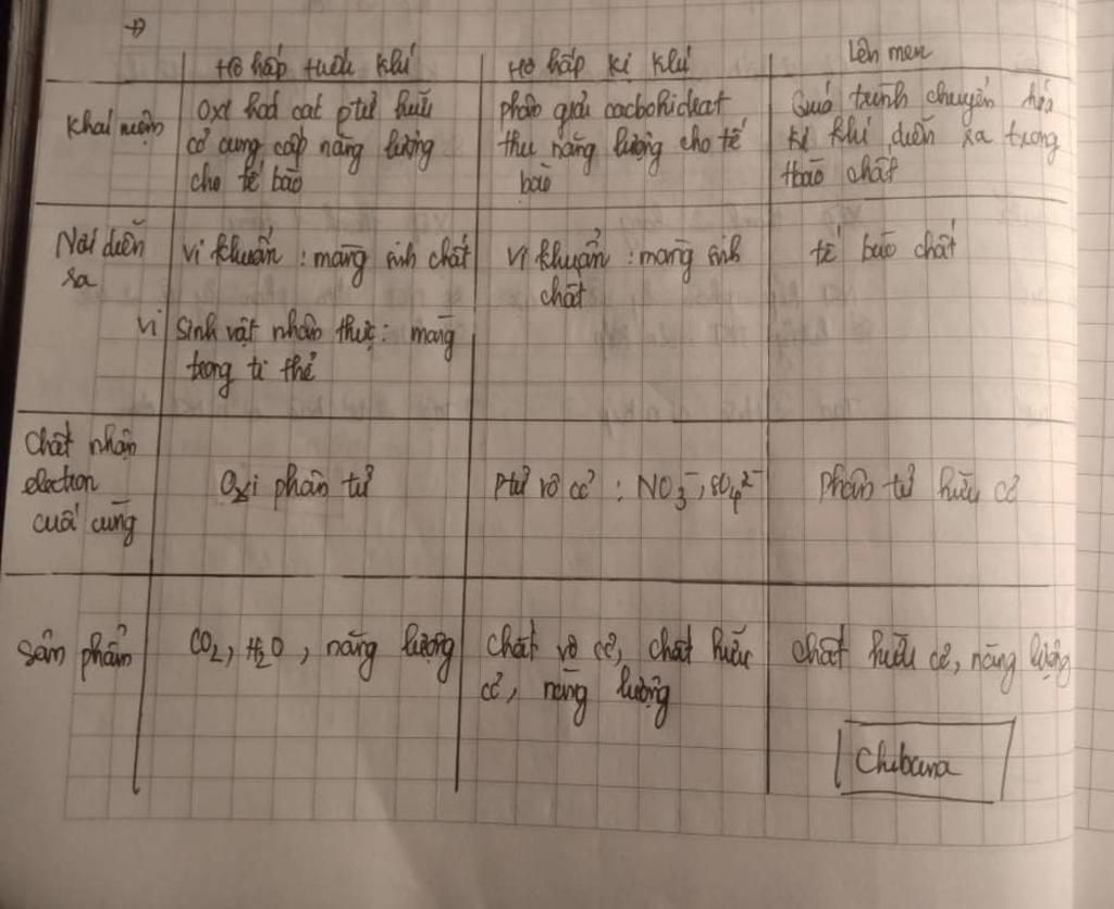 + Chuỗi chuyề e- diễn ra ở màng sinh chất (ở VSV nhân sơ) hoặc mà trong ti thể (ở SV nhân thực).