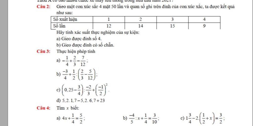 Câu 3: Thực hiện phép tính