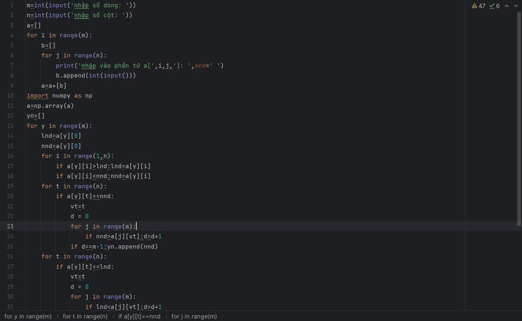 Phần tử A[i,j] được gọi là "yên ngựa" của mảng hai chiều nếu nó đồng thời là phần tử nhỏ nhất của dòng i và là phần tử lớn nhất của cột j, hoăck A[i,j] phải là phần tử lớn nhất cảu dòng i và là phần tử nhỏ nhất của cột j