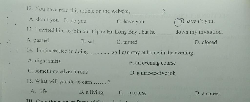 - TĐT "have"-> "haven't"+ chủ ngữ "you".
