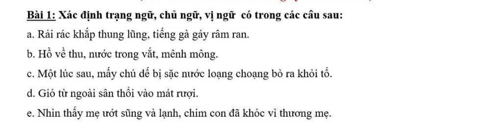 Chủ ngữ : Tiếng gà