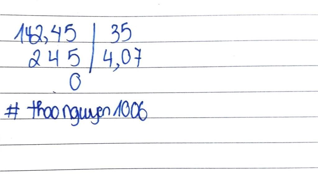 `142,45 : 35 = 14245 : 3500 = 4,07.`