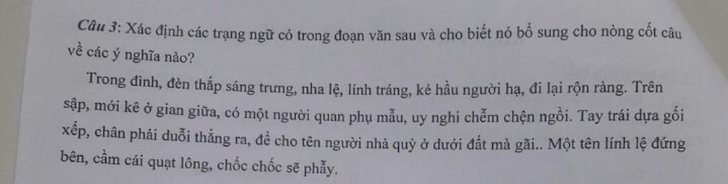 Câu 3: Các trạng ngữ có trong đoạn văn: