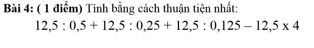 `12,5 : 0,5 + 12,5 : 0,25 + 12,5 : 0,125 - 12,5 xx 4`