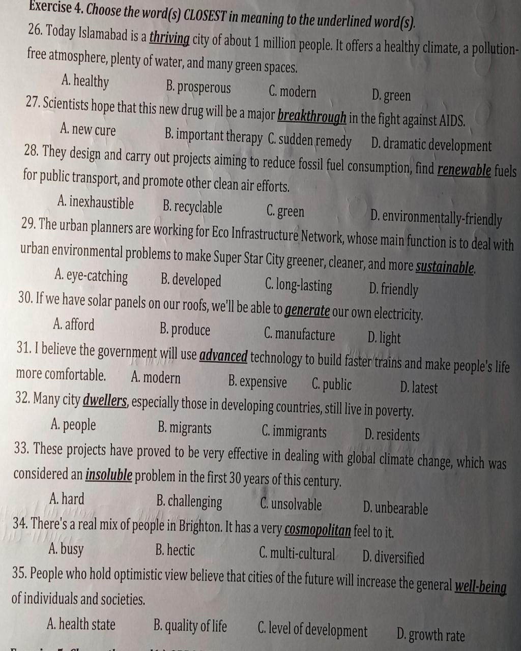 Exercise 4. Choose the word(s) CLOSEST in meaning to the underlined word(s).