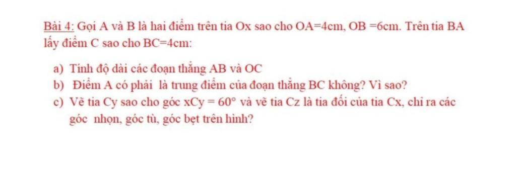 `OC+BC=OB => OC=OB-BC=6-4=2cm`