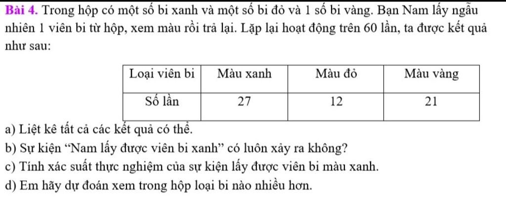 - Vì vậy ta có thể dự đoán số bi xanh trong hộp nhiều hơn.