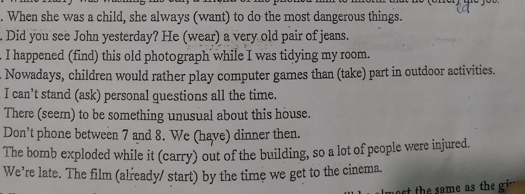 - S + can't stand + V-ing: không thể chịu được làm gì