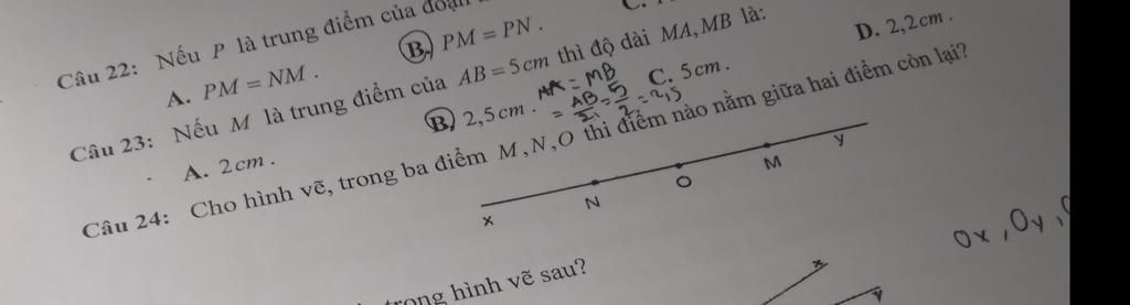 N thuộc tia Ox, M thuộc tia Oy